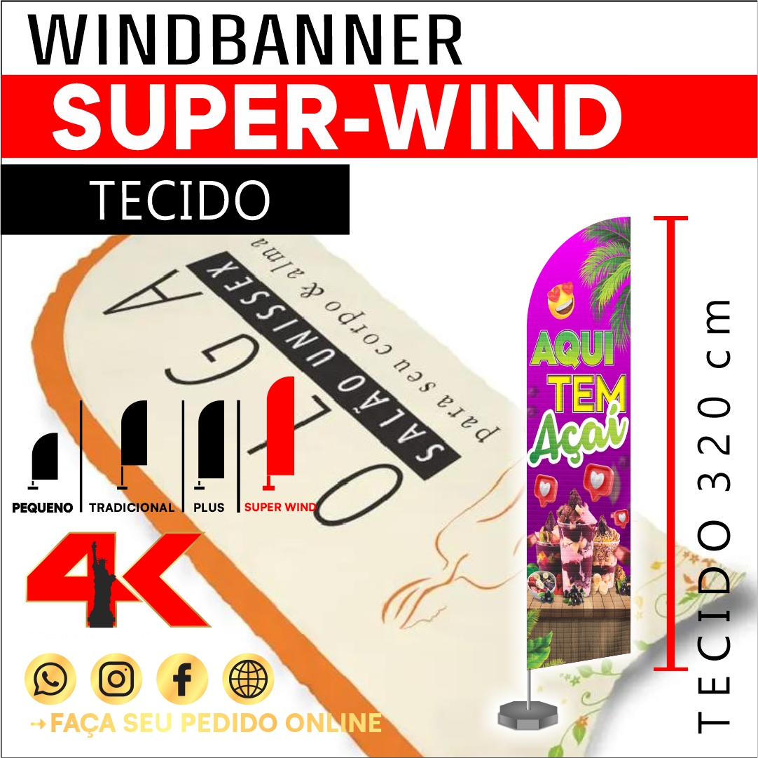 WINDBANNER tradicional, sem aste e sem base, somente o tecido, com corte e costura, pronto.